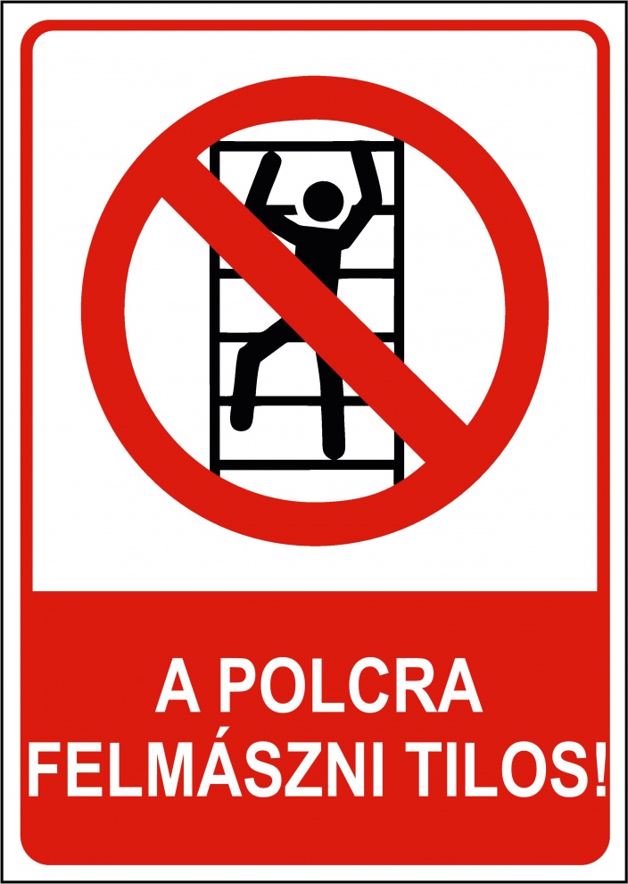 A munkavédelem és a biztonság érdekében a polcra mászni szigorúan tilos, mivel ez súlyos balesetekhez, a polcrendszer összeomlásához vagy maradandó sérülésekhez vezethet. Magasabban lévő áruk eléréséhez kizárólag szabványos gurulóállványt, rögzített létrát vagy biztonsági fellépőt szabad használni. A polcok szerkezete függőleges terhelésre van méretezve; a mászás során fellépő oldalirányú erők kilazíthatják a rögzítéseket.