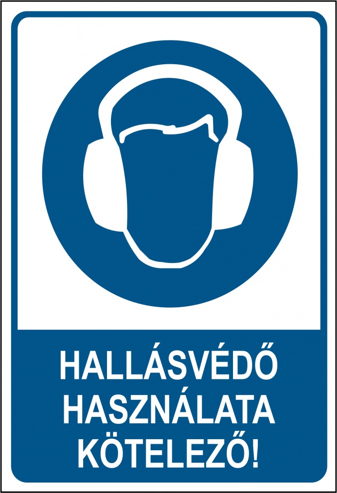 85 dB (A) feletti napi zajexpozíció vagy 137 dB (C) csúcsérték: A területet "Hallásvédő használata kötelező" táblával kell megjelölni, és kötelező a hallásvédő eszközök viselése mindenki számára, aki ott tartózkodik.