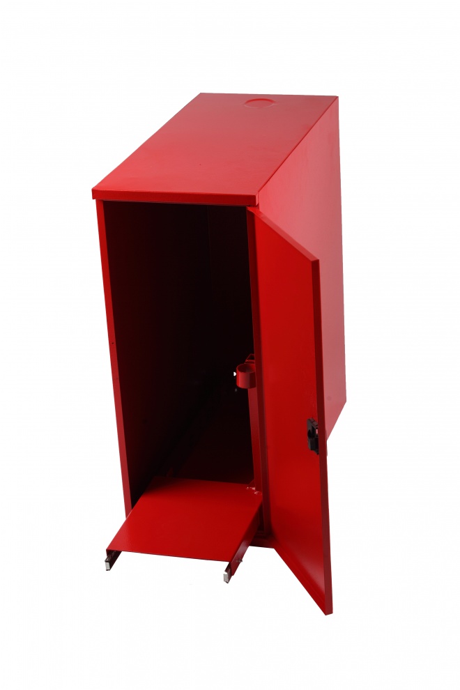 EN 671-1:2012 szabvány szerinti D-25-ös szerelvényeket tartalmazó lemez- vagy üvegajtós - CE minősített - sínes tűzcsapszekrények, inox vagy inox előlapos változatban is 150 l/perc vízhozam biztosításával. Igény szerint takaróperem, illetve tartóláb is rendelhető a tűzcsapszekrényhez.