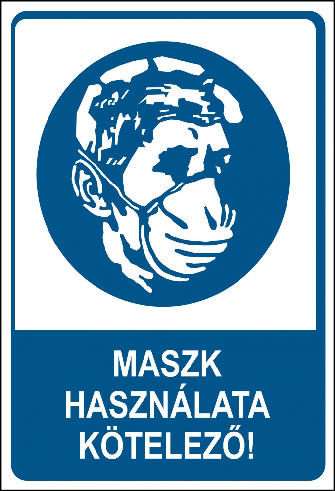Porvédő, légzésvédő maszk, részecskeszűrő használatát előíró munkavédelmi biztonsági jelzés. Magyarországon általános maszkviselési kötelezettség nincs érvényben a közterületeken vagy az üzletekben.