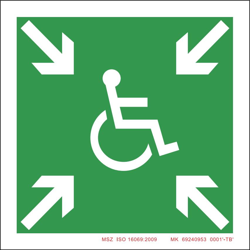 Menekülésben korlátozott személyek részére szolgáló átmeneti védett tér jelölésére szolgál.
