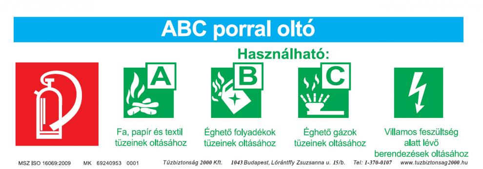 UV Biztonsági adattábla - ABC porral oltóhoz