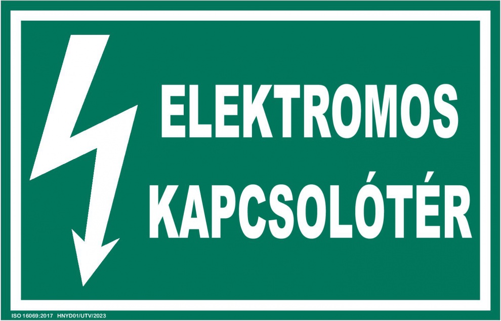 Elektromos kapcsolótér feliratú villamossági érintésvédelmet jelölő tábla