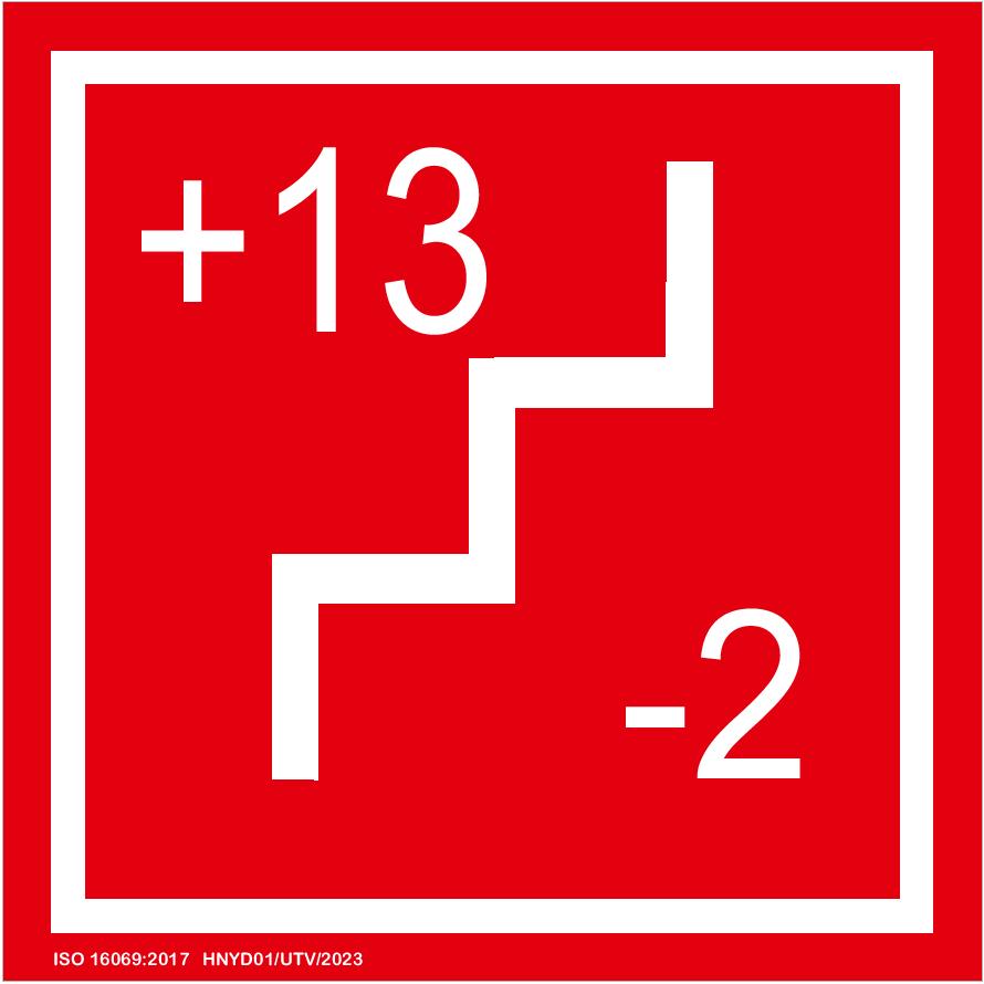 UV Lépcsőn elérhető szintek - Füstmentes lépcsőház piktogram - szintek: +13/-2