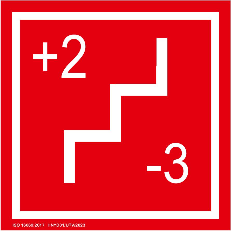 UV Lépcsőn elérhető szintek - Füstmentes lépcsőház piktogram - szintek: +2/-3