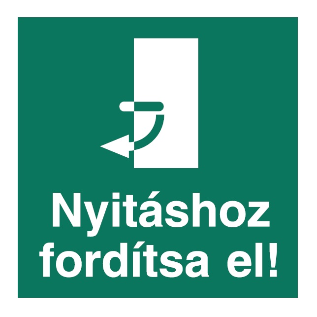 „Nyitáshoz fordítsa balra” tábla a zár nyitási irányát mutatja.