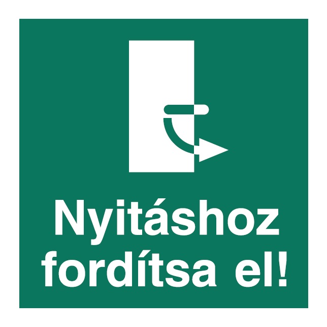 „Nyitáshoz fordítsa jobbra” tábla a zár nyitási irányát mutatja.
