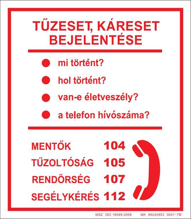 A közérdekű hívószámokat - mentők, tűzoltóság, rendőrség - jól látható helyen és időtálló kivitelben kell elhelyezni.