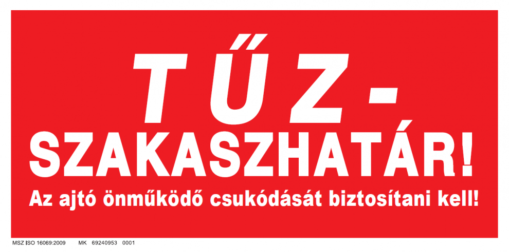 A tűzszakaszhatáron lévő tűzgátló ajtókat "Tűzszakaszhatár! Az ajtó önműködő csukódását biztosítani kell!" felirattal vagy jelzéssel kell ellátni