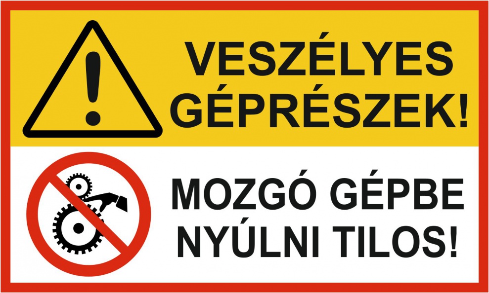 Veszélyes géprészek! - Mozgó gépbe nyúlni tilos!